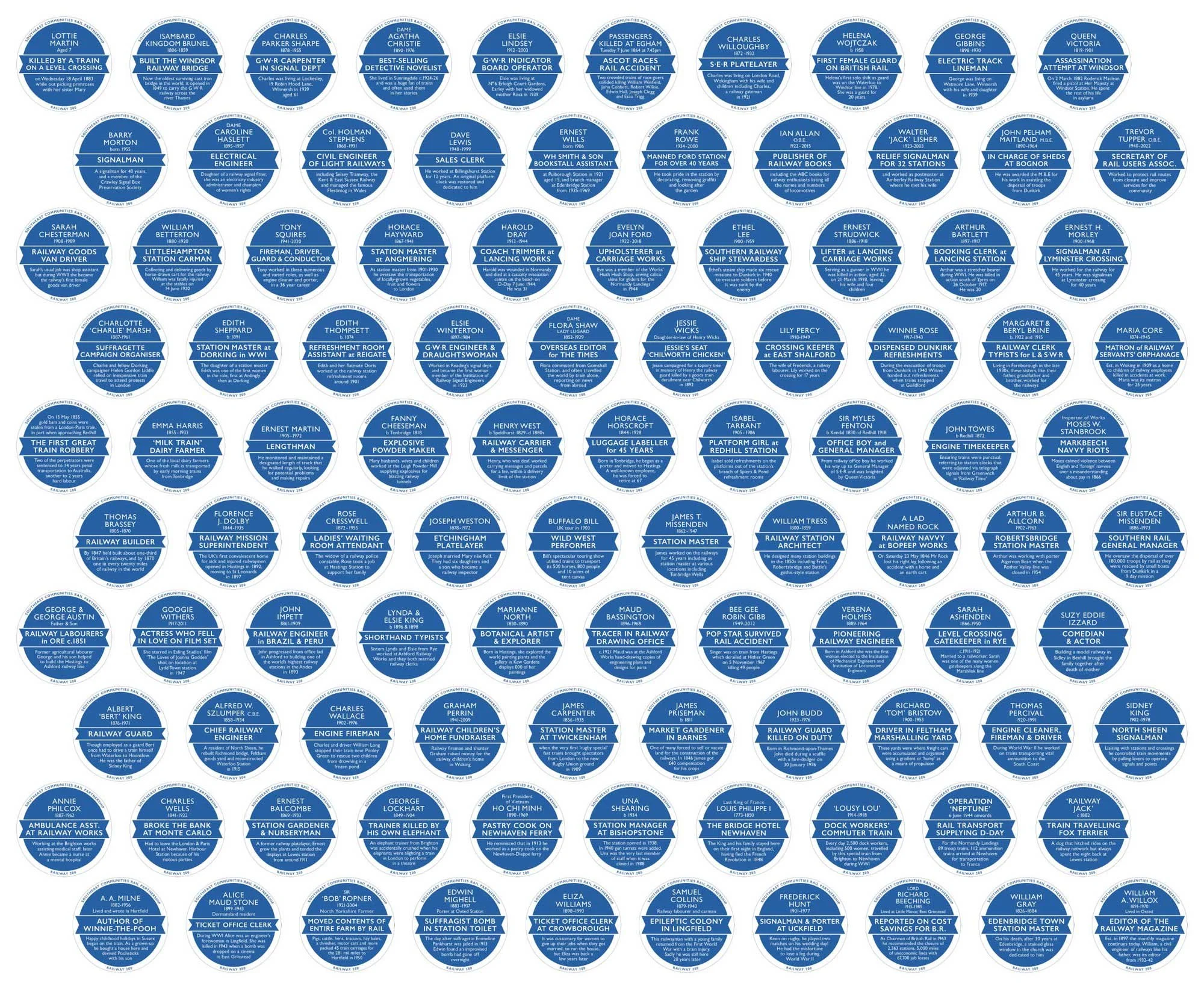 Illustrating two centuries of UK railways through the lives of 100 people, their occupations or events that affected them.